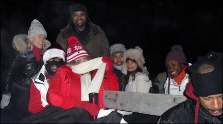 Many nights we jumped into the hot tub (minus Mrs C) watching the twinkling stars in the ink black sky, minus the usual annual festive flute of champagne for obvious reasons. One particular hot tub moment of hilarity came when 3 of us were in the hot tub trying to persuade Nick to join us. He was of course making the usual "black men don't do snow in their underwear" noises.